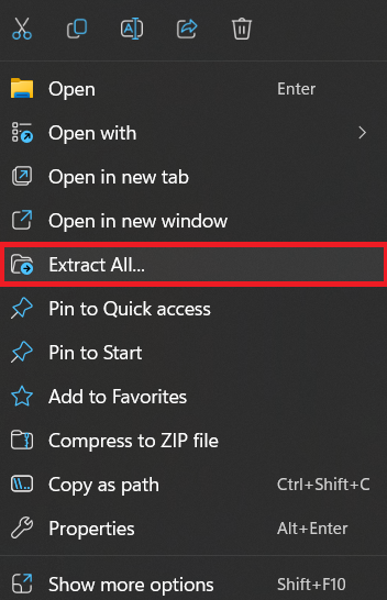 After the download has been completed, locate the downloaded folder (usually in the ‘Downloads’ folder on your computer) and extract the folder by right-clicking and selecting ‘Extract all…’