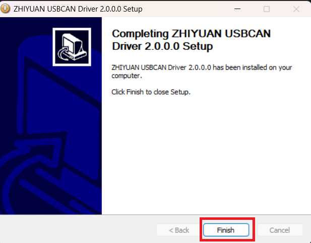 Proceed to install ‘DRIVER 2’ located in the ‘USBCAN DRIVERS’ folder.