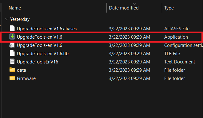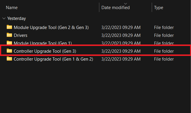 Now select and open the ‘Controller Upgrade Tool (Gen 3)’ folder followed by the ‘UpgradeTools-en V1.6’ application file.