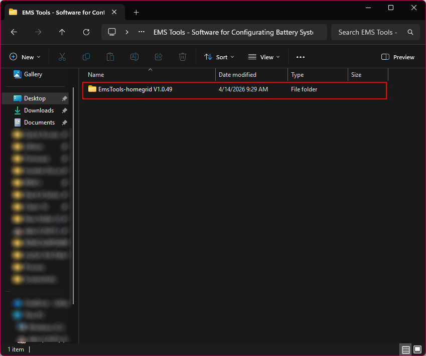 1. Open the folder 'EMS Tools - Software for Configurating Battery System'