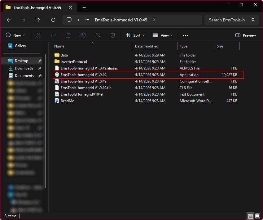 2. Open the folder 'EMSTools-homegrid V1.0.49'